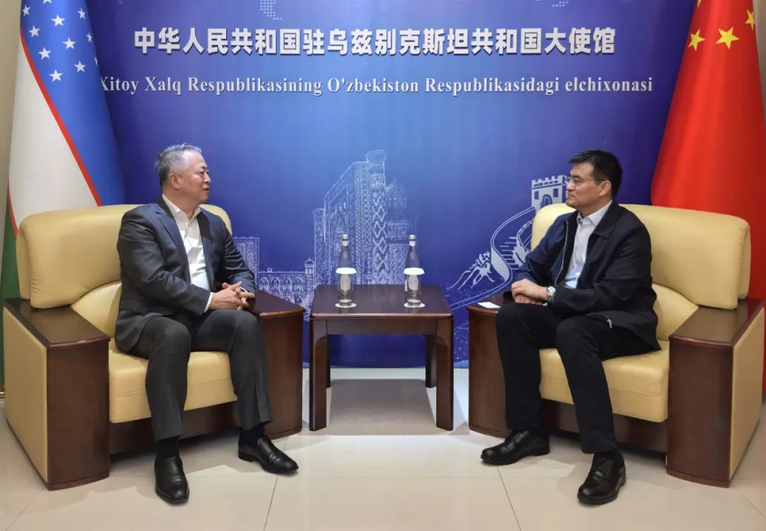 近日,国机工程集团党委书记、董事长,中工国际党委书记、董事长王博在乌兹别克斯坦期间,拜会了中国驻乌特命全权大使于骏,并召开国机工程集团在乌兹别克斯坦座谈会。